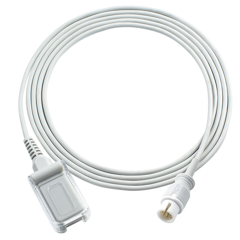 Удлинительные кабели SpO2 обычно имеют разъем датчика на одном конце, который подключается к датчику пульсоксиметра, и разъем основного блока на другом конце, который подключается к основному блоку пульсоксиметра.